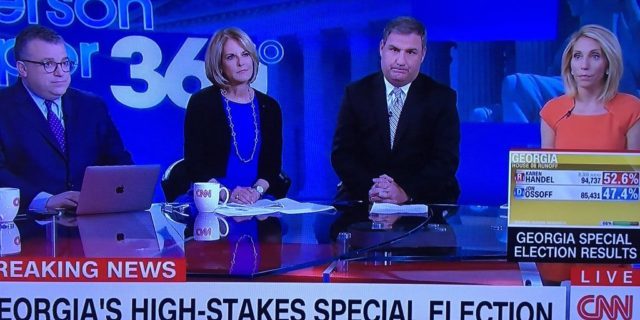 A few minutes earlier, CNN had aired the speech of Democrat Jon Ossoff until it ended. Ossoff was expected to win by most observers, and carried the hopes of the so-called “#Resistance,” which hoped that Tuesday would mark the beginning of the end of the GOP majority in the House of Representatives and of President Donald Trump himself.