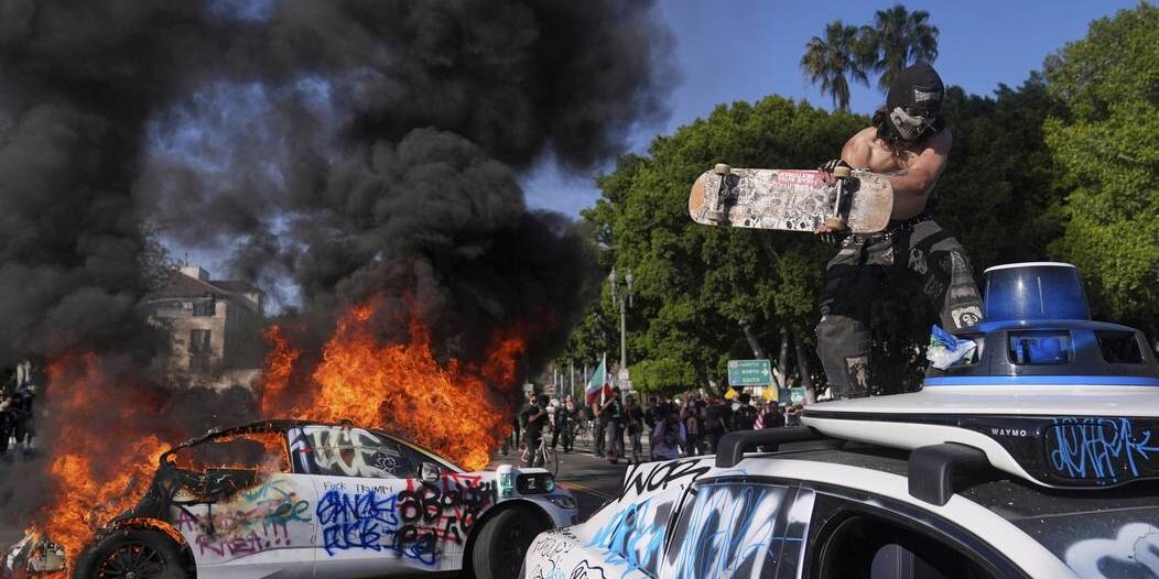Multiple Waymos were torched over the weekend. The self-driving taxi cars fell victim to the leftist mayhem engulfing Los Angeles, which has become so bad that military forces had to be deployed. President Trump has sent in the U.S. Marines and is ordering more California National Guard units, which were federalized, into the city to quell the rebellion.